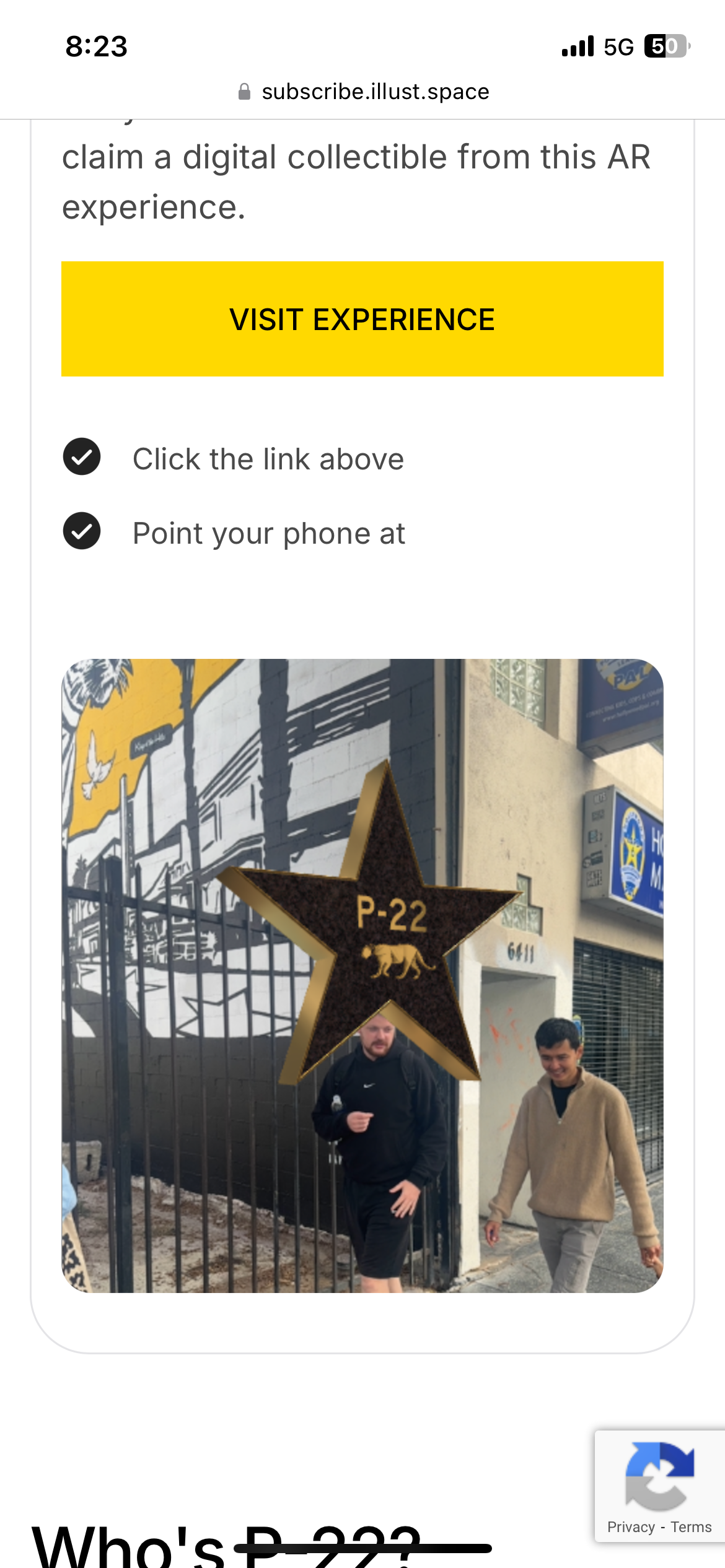 Augmented reality experiences tied to artist Corie Mattie's P-22 mural and star on the Hollywood Walk of Fame.